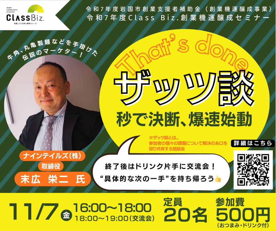 【令和7年度Class Biz.創業機運醸成セミナー】ザッツ談(That’s done!) ~秒で決断、爆速始動~